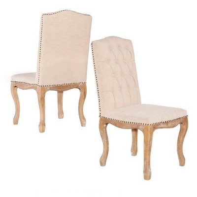 Set Of 2 Portsmouth Linen Tufted Back Chairs Natural